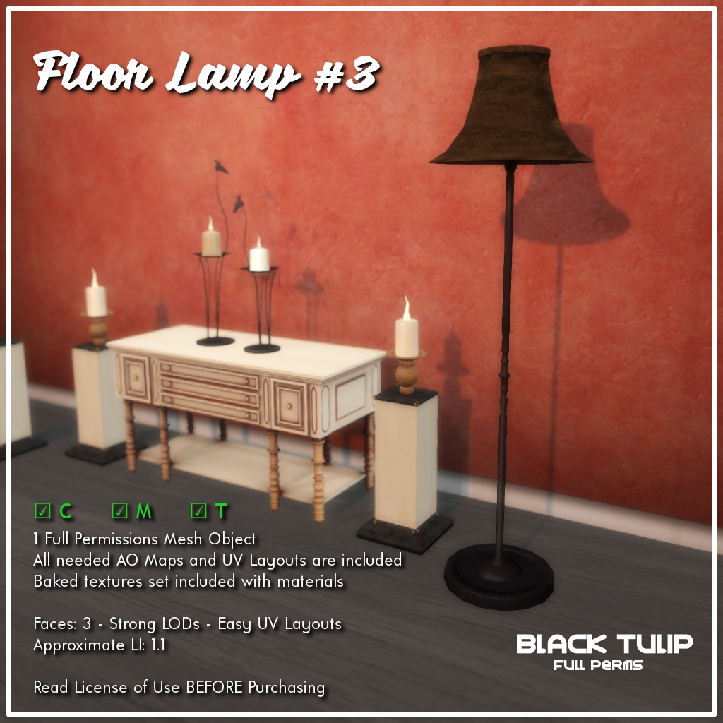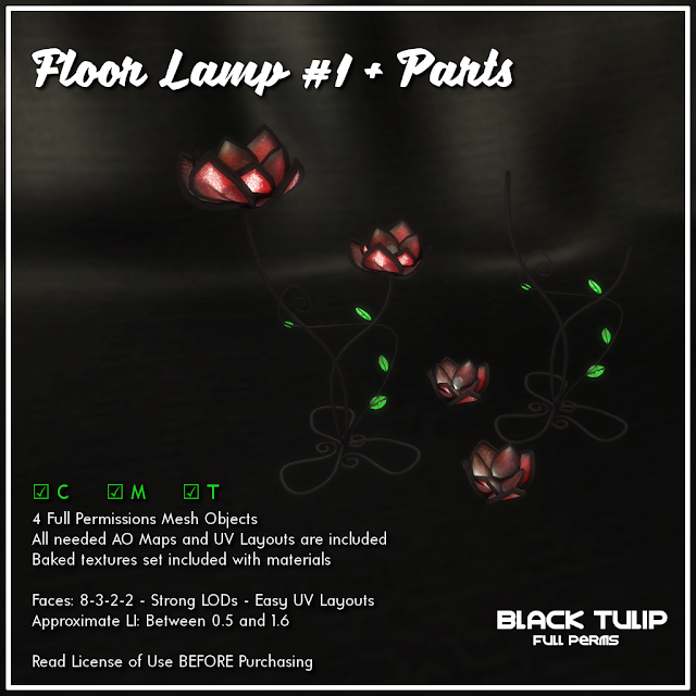This weekend we have four new releases and a group gift. Three of them are mesh kits: lamp sets. All of them include baked textures with materials. The fourth item is an updated version of our Lamps script.Rewritten from the ground, the new version allows the well known functionality and some more in a single script:
